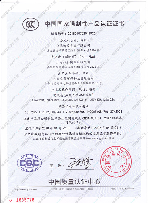 在2018年伊始,凱美恒品牌走上新的發展軌道,我公司凱美恒品牌冷風機4款型號產品獲得國家強制性3C認證,在國內同行中處于領先地位。我公司今后將以更高的標準,做更安全,更穩定的產品滿足廣大消費者需求。歡迎新老顧客來電咨詢,為了進一步拓展市場,現誠招全國各地城市合伙人,分銷代理商,財富熱線:4006512590